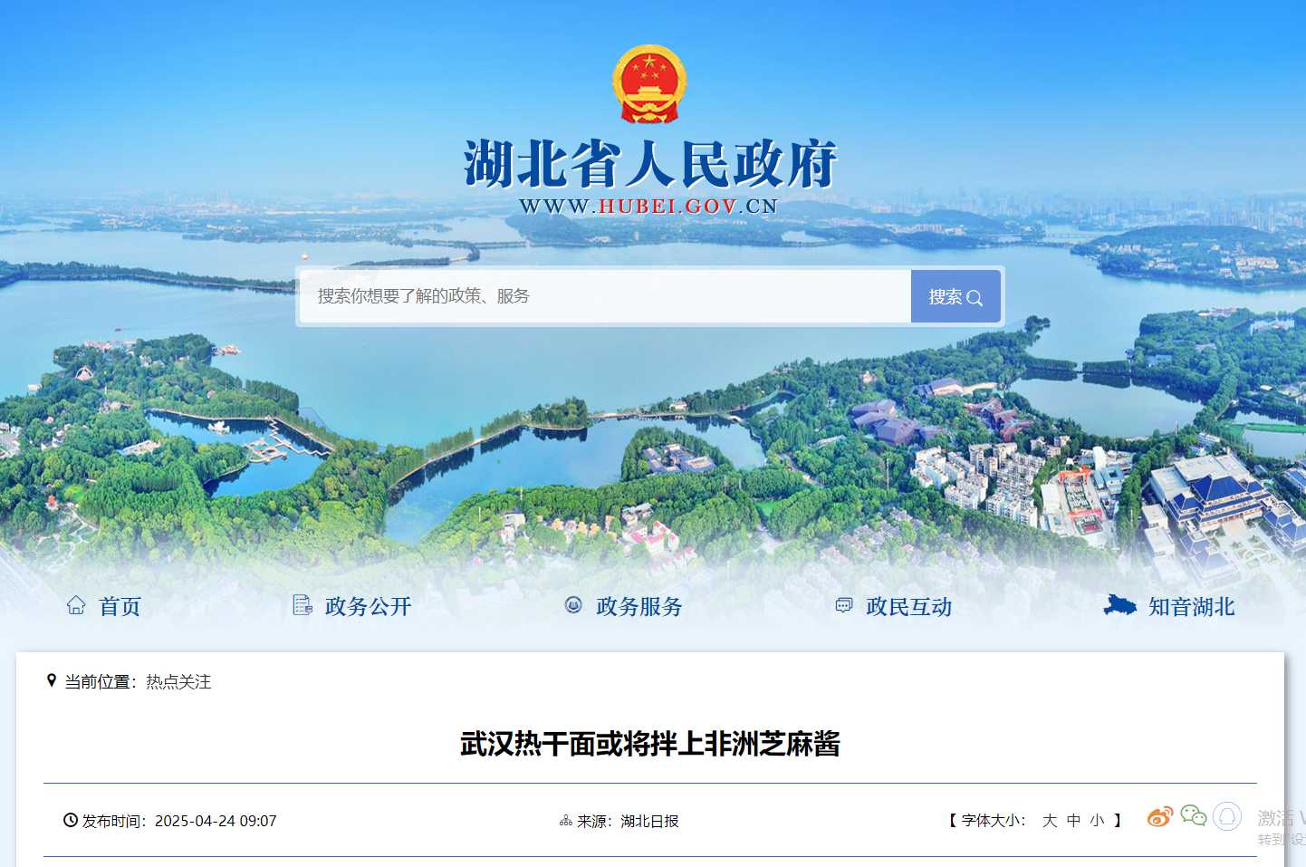 湖北省人民政府:武漢熱干面或?qū)枭戏侵拗ヂ獒u