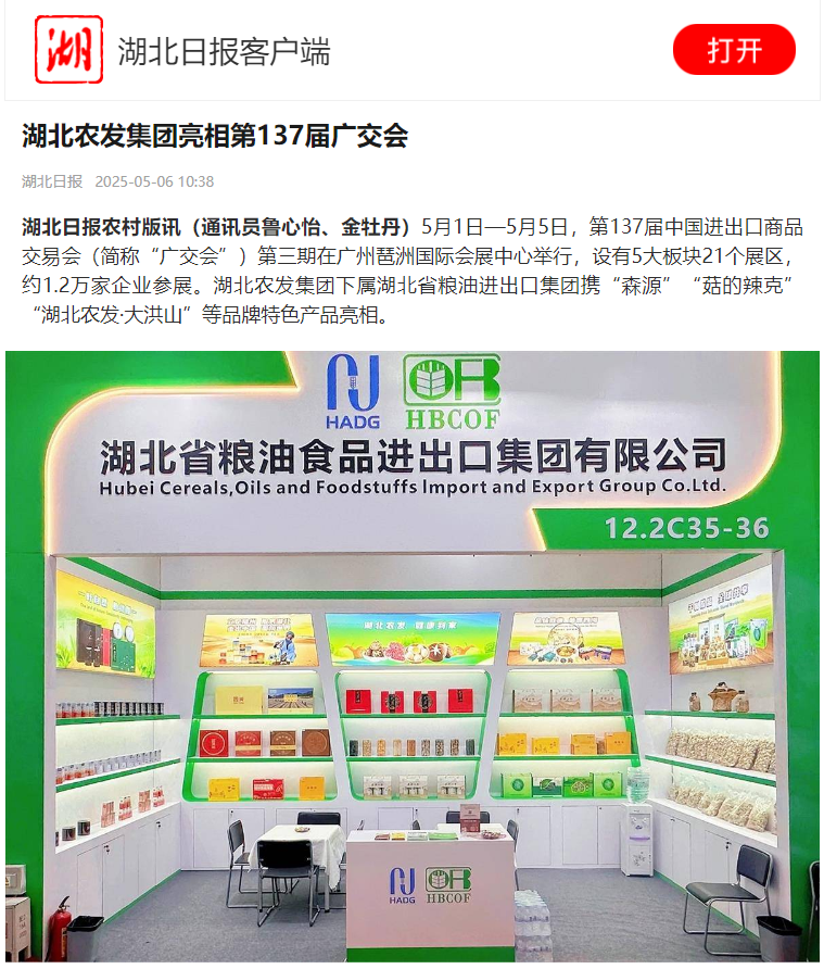 湖北日?qǐng)?bào):湖北農(nóng)發(fā)集團(tuán)亮相第137屆廣交會(huì)